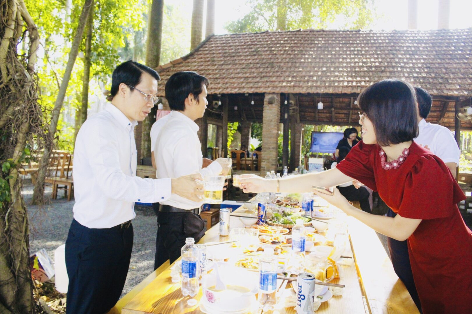 Còn trong các buổi nhậu tập thể, không khí thân mật và gần gũi được tạo ra không chỉ qua những ly bia và món ăn ngon mà còn thông qua những câu chuyện và tiếng cười. Những sự kiện này giúp mọi người thư giãn sau những giờ làm việc căng thẳng, thắt chặt mối liên kết và tăng cường sự hiểu biết lẫn nhau, từ đó xây dựng một đội ngũ mạnh mẽ, đoàn kết và đầy đam mê.